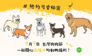 9/9 台灣狗狗節,台灣動物社會研究會發起「#牠的可愛秘密:愛牠,請先認識牠」社群串聯行動,與Leo 王、陳零九、潘慧如等多位知名藝人與網紅,一同邀請大眾認識品種犬的潛在健康風險與遺傳疾病。
